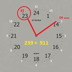 В сентябре есть ещё одна дата, которая связана с числом «239». Это 11 сентября (11.09). Каким образом? Посмотрите на циферблат. 23 это 11 на часах. Вот и получаем 119 = Богочеловек. Ему зеркалит известный код 911 – Служба спасения. Наше спасение - стать Богочеловеком.